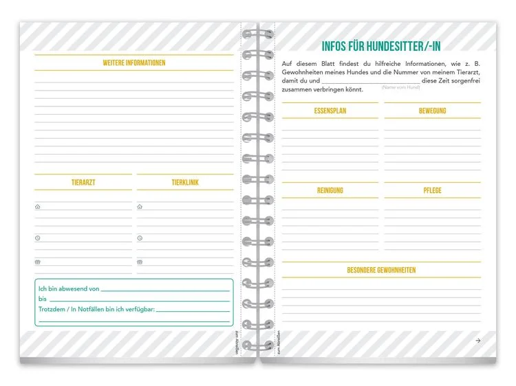 Z. B. „Was mein Hund mir beigebracht hat“ oder ein Trainingstagebuch.